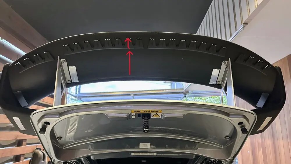 リヤウイング下面は、空気が速く流れる必要があるのに、段差が出来るのはいかがなものかと。